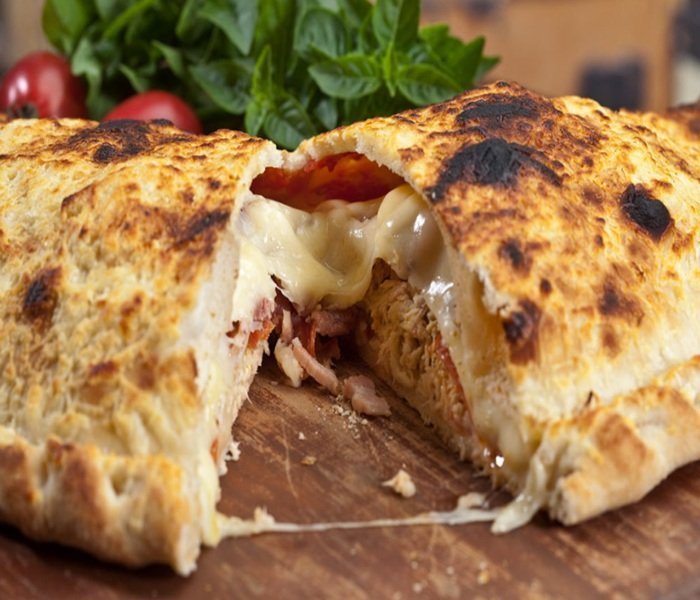 Nossos calzones são recheados generosamente e selados para concentrar todos os aromas e sabores em um tesouro de queijo derretido e molho suculento. A crocância da massa por fora e a maciez do recheio por dentro são uma experiência à parte.